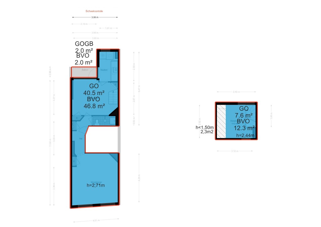 40.9 m² living space + 7.6 m² attic