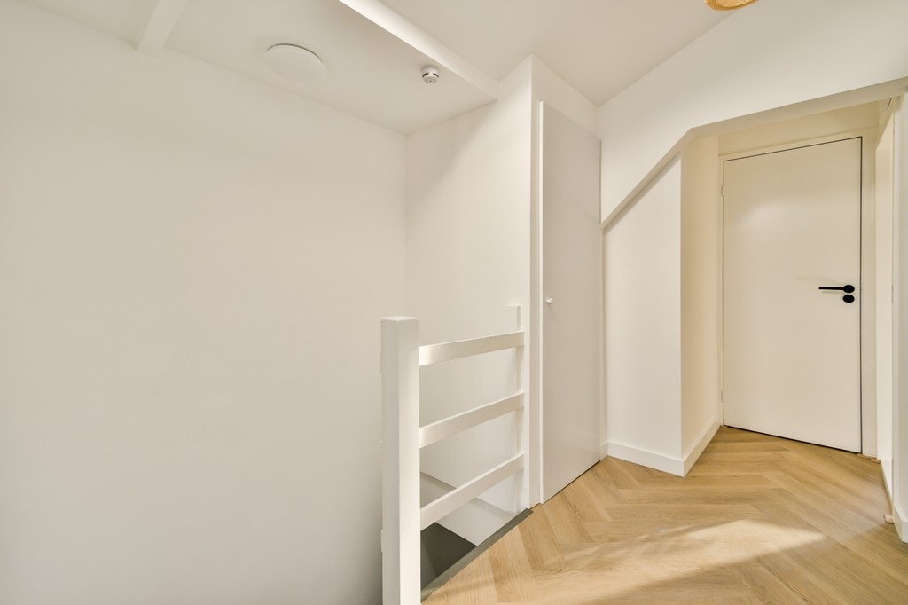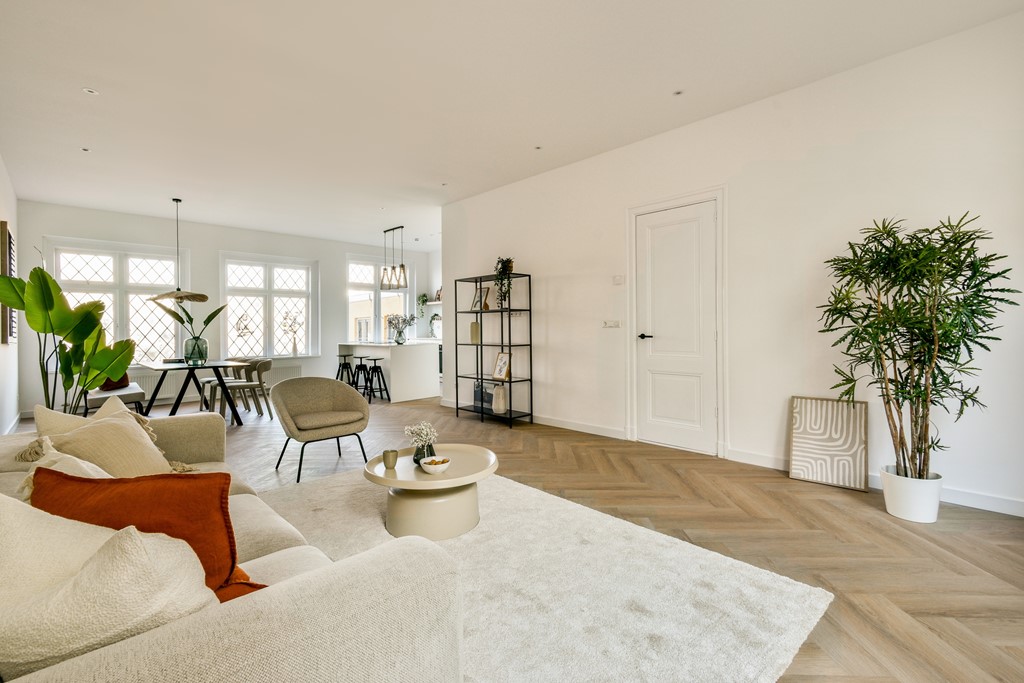 Bij binnenkomst kom je in de stijlvolle hal met een prachtige authentieke trap, die meteen de sfeer van het huis zet. Vanuit de hal betreed je de ruime en lichte woonkamer met hoge plafonds en grote raampartijen. Wat direct opvalt, zijn de originele glas-in-loodramen die prachtig bewaard zijn gebleven—een uniek historisch detail uit de tijd dat dit pand het kantoor was van de voormalige buurtbakker.