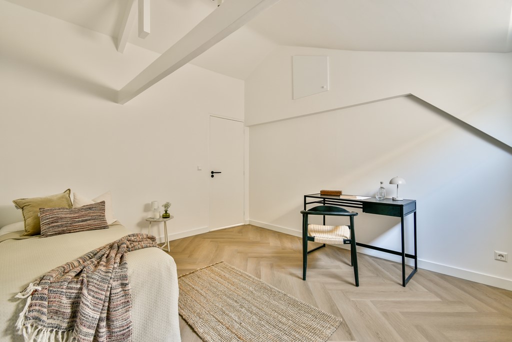 Upstairs, you’ll find three cozy, loft-style bedrooms filled with natural light and generous attic storage. One of the rooms can easily be transformed into a study, home gym, or additional guest room, whatever fits your lifestyle. There’s also a second contemporary bathroom with an attached toilet, featuring an elegant oval marble basin, a walk-in rain shower, and soothing finishes.